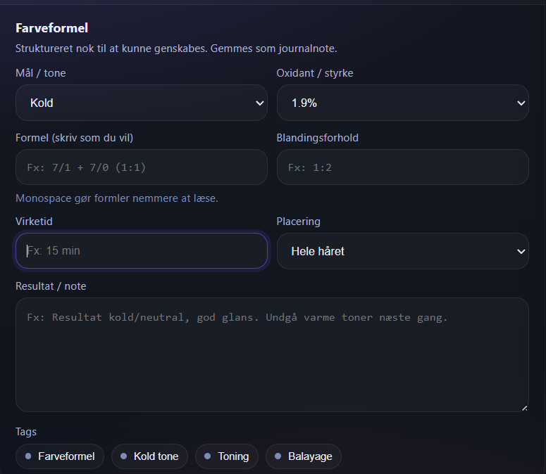 Introduces a flexible 'Add Note' panel for customer journals with: - Configurable note tags - Visibility and marking options - Interactive UI for note creation Improves user experience for salon staff note management